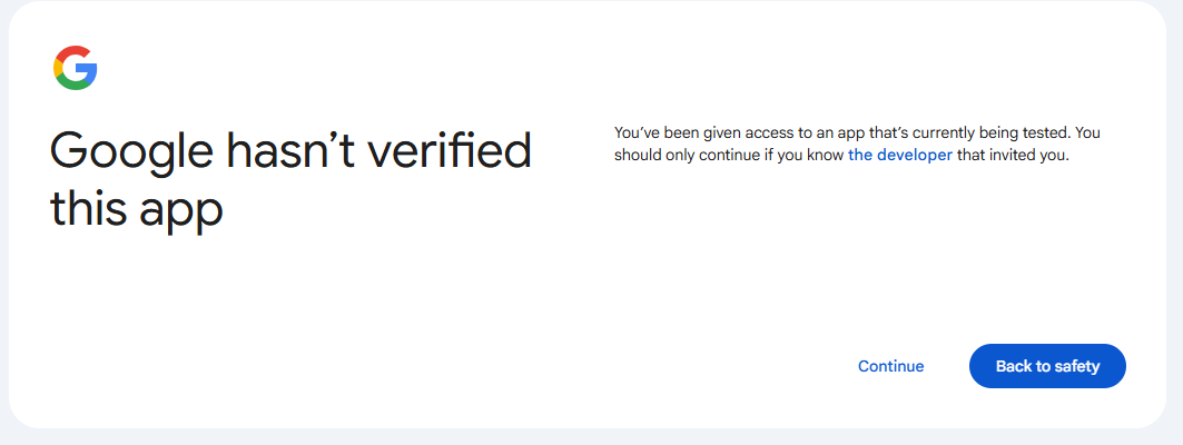 - If you’re in our beta program, you may have to click Continue on the Google hasn’t verified this app screen.